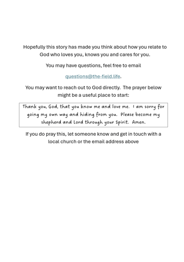 Hopefully this story has made you think about how you relate to God who loves you, knows you and cares for you.